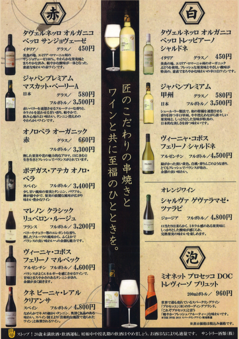 Menu & Price お品書き